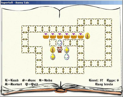 Bunny Tale is a new remake of a popular logic game "Sokoban". This time you'll be playing a clever rabbit trying to bring back the eggs for the Easter. Original innovations and high quality animated graphics will guarantee you and your children many hours of brain-bursting fun.