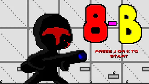 8-B (pixelated platformer shooting game with a ton of pixelated blood and ugly characters)
