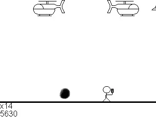 A quick little arcade-style shooter about a stick dude with a cannon for an arm and shoots UFOs and helicopters for a living.