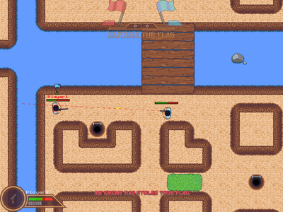 Two teams play against one another to steal the other teams flag while defending their own. The first team to capture the enemies flag a set number of times wins the match. The score required to win the match can be set by the server before a game starts.