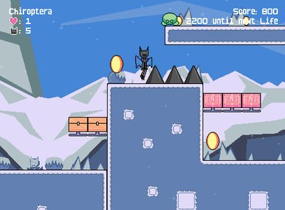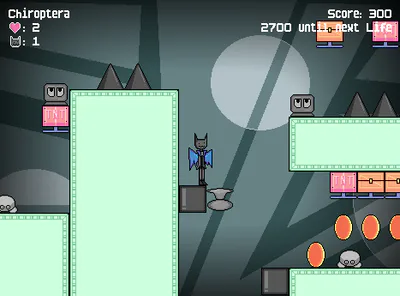 Chiroptera (kai-rop-ter-uh)Â is a 2D platformer roguelite where you traverse multiple acts and upgrade Froide after each one. Upgrades are kept even after all lives are gone.
