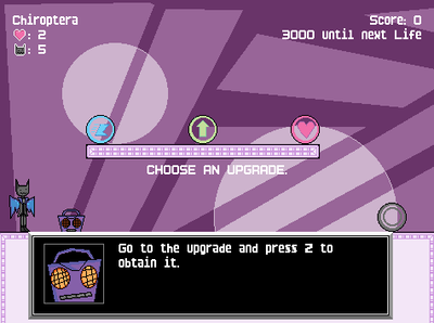 Chiroptera is a game I've been working on for around 10 days. This demo is subject to change or be cancelled entirely. It contains the game's first level and boss.Â