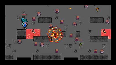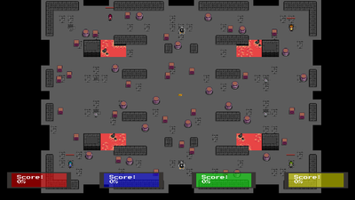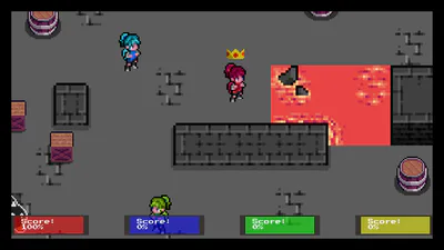 The Battle unfolds in a dark dungeon carved deep beneath the ground. The four players enter from the corners of the arena, while the crown spawns at its centre. Between them lay walls of hardened stone that are unbreachable for passing, as well as pits of lava, which deal damage to the player on contact. Scattered crates and barrels from earlier expeditions block paths but can be destroyed through force, dynamically reshaping the battlefield. In addition to that, you can step over items, which grand you an advantage or make things harder for you.