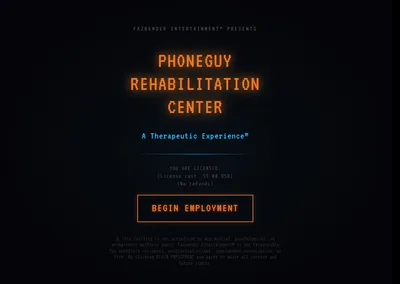 The “PhoneGuy Rehabilitation Center” is less a medical facility and more of a converted storage warehouse that smells like burnt wires and the weird crunchy outer layer from an exploded battery from a forgotten 2000's kid's toy. But hey, there's also a motivational poster that says: “Feelings are just firmware"! A win is a win, right?