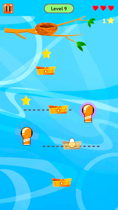 Let Egg Man reach back to the nest, Start every level with 3 Life chances, While in water or underwater the Egg moves fast upward, avoiding colliding with these Dodging gears. The controls in the water are entirely different from controls the outside of water. collect all stars from every level to get something more challenging.