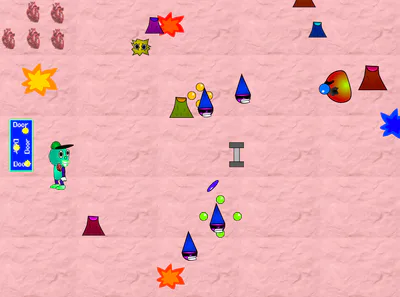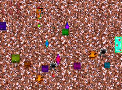 Play as a character named jellohead to enter some niche dimensions with a little mix of lsd and cocaine, and you have to face different enemies with different attacks, you know what else is different? your attacks, if you press the arrow buttons on your keyboard, you'll access your attacks, everytime you die/beat a boss, you'll enter a new dimension, you switch weapons everytime, whenever you go to a door, you find enemies and obstacles, after shooting them, it opens the door, and there's different bosses. you'll also have random sets of lives.