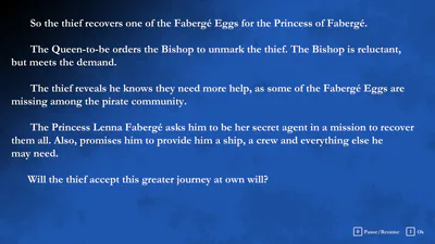 In order to compel him to go on this journey, the Bishop of the Kingdom of Fabergé casts a spell to mark the Mark of Shame Among Thieves on the character's forearm.