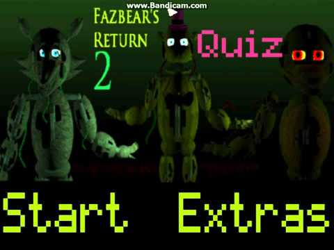 Hi there everyone welcome to another quiz, this time we will be testing how well you know the game FAZBEAR'S RETURN 2 ( http://gamejolt.com/games/fazbear-s-return-2/74688 )