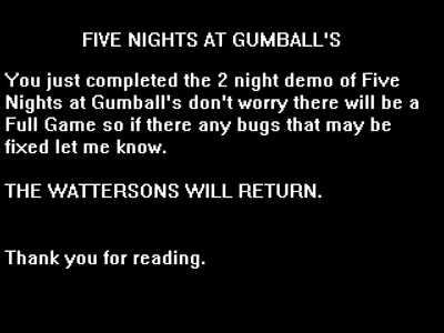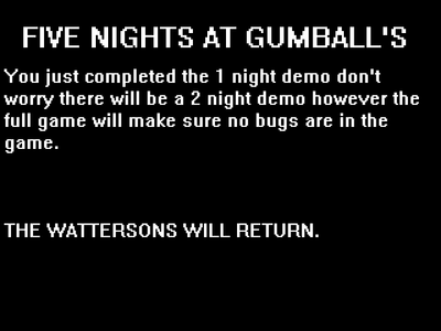 This is the first game of five nights at gumball's so enjoy.