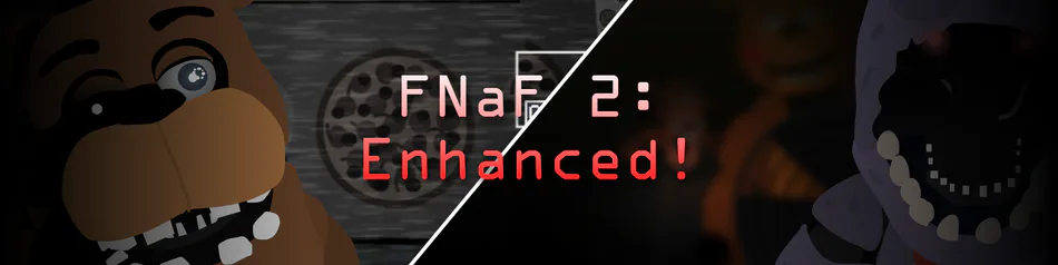 FNaF 2, Enhanced! Is a complete rework of FNaF 2 from the ground up, the game aims to make the original FNaF 2 more skill based and fun, as well as giving the game some new graphics and quality of life updates. This game features 10 presets, 3 max modes, 15 characters, and many more settings to make your experience better! The game brings back all the original FNaF 2 characters but also adds 4 new ones, RWQFSFASXC, Shadow Freddy, Endo 02, and JJ. These characters were all previously easter eggs but were reworked to be much more important!