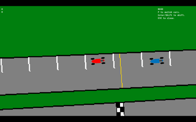 Simple prototype racing game where you can control either a red or blue car and do laps around a simple road course. The red car is an automatic while the blue car is a manual. Planned features include damage, fuel, and multiplayer.