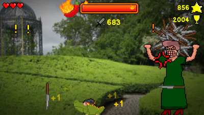 Jump, run, dodge, do everything possible to avoid getting a kitchen knife in your side. Caroline is determined against Froggy.