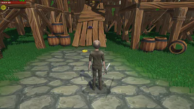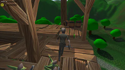 I climbed all the way to the top. There's a coin and a gem there, pushed some barrels off the tower and fell aaaalll the way down. Controls need a bit of work. Game looks good though.