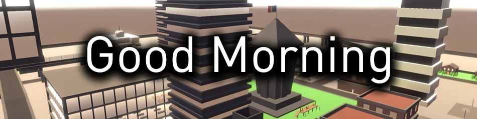 Good Morning is an open world sandbox game. In good morning you play Dave, a man who has had enough of his mundane life and has decided to follow along a different path... Explore the world. Commit Mass Murder. Grab a cup of coffee. Rob a bank. Sell some drugs. Unleash hell fire upon the world. Or maybe go on an afternoon stroll through the park. The Choice is yours!