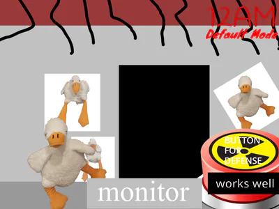 In the office,you have a monitor and a button for defense and also a clickable plushie.You also have 4 cameras to watch,the useful ones being CAM 3 and CAM 4.Survive until 6am and defend yourself.