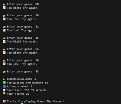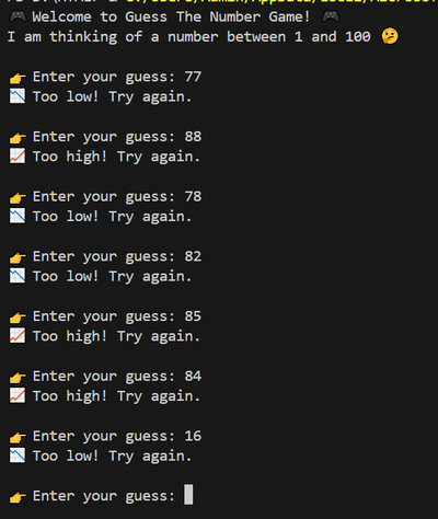 🎯 Guess Game is a simple and fun game where you try to guess the correct number. Easy to play, challenging to master! 🧠✨