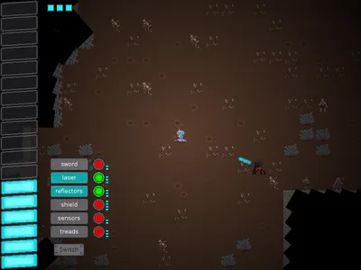 You play as a robot seeking power cores to achieve your fully powered state. In the mean time you have to manage what little power you have to keep your subsystems online and fight off other machines and scavenging humans.