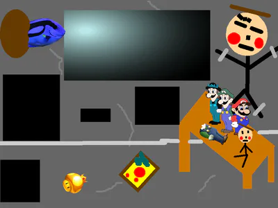 Super Paper Mario for the title screen themes. Also Weegee-Pedia users for Pureegee, Watergee, Weegee, and Malleo. Other characters where created by me.