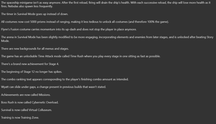 Think of this game as a cross between Mega Man X, Dan the Man, and Pizza Tower. You run to the end, punch anything that moves, trigger transformations that drain your stamina, fight bosses at the end (or start) of each chapter, unlock Wyatt's Bluelight Level 2 transformation after beating the game, and unlock a fifth character after you M-Rank every level in the main campaign. There are also bonus levels, an endless mode, costumes, and 2-player co-op.