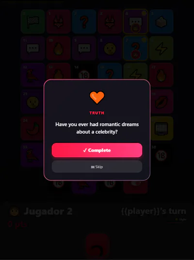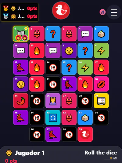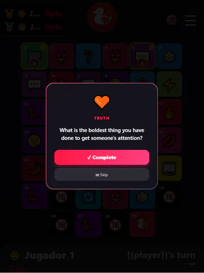 Each square triggers a different type of interaction: questions, dares, group votes, duo challenges, or special actions.