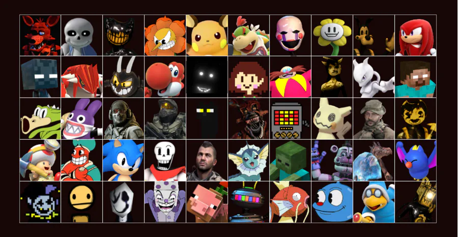 Characters from 15 different gaming franchises have come to attack you in this Ultimate Custom Night fan-game. There's characters from FNaF, Undertale, Pokemon, Call of Duty, and more!