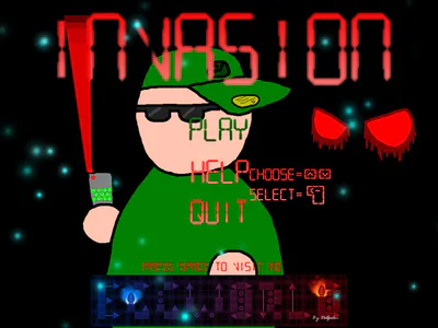 Invasionis a story of Jason who takes the duty to kill the Alien King Codossus. And this duty was not given to him. Battle the Aliens in the sewers in this Platform/Shooter game. It contains 8 exciting levels and a Boss fight. If you feel sick because of the rotation of the screen, press P to turn it off. You can listen the musics of the game here: http://www.newgrounds.com/audio/listen/333765 and http://www.newgrounds.com/audio/listen/17293