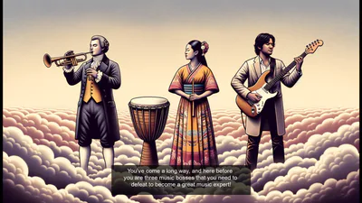Judging music in different categories. A game quiz where you need to defeat music bosses.