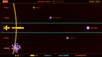 Experience an arcade survival challenge where typing skill equals firepower and your keystrokes are your greatest weapons...and deadliest foes. Dart between lanes, destroy your enemies, upgrade your ship and overcome ever-escalating challenges that feel personal. Do you have what it takes to conquer them all?