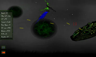 Hold left mouse to fire.