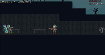 #shooter #platformer #waves #zombies #survival #indie #pixelart #WWI