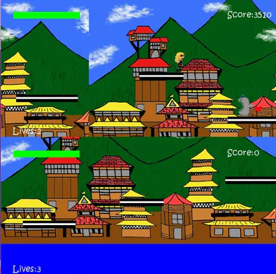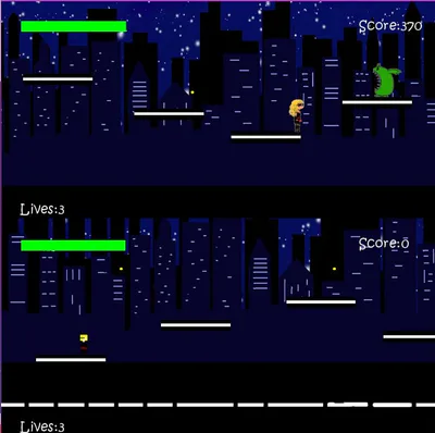 Ninja Strike is a local multiplayer platformer game where you verse the other player to gain the most amount of points. Collect ninja throwing stars and defeat monsters on the way. The player with the most points at the end of the games wins. Ninja Strike is based in three different parts of the world, New York city, Japan and a forest. This is a fun and challenging short game that is fun to play with friends. The style of this game is cartoony with fun colours that suit the fun vibe of the game.