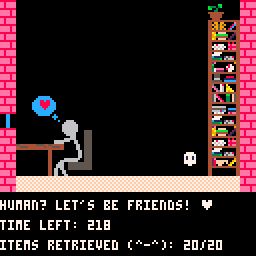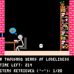 As a lonely ghost, trapped in your house for a thousand years, you finally have a roommate - you'll do anything for them to notice you! When they want something, go knock it off their shelf and bring it to them - but don't let anything hit the floor and shatter! They'll flee their haunted house...