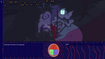 You kneel at the altar of a dead god. But there are no gods now. Only monsters.
