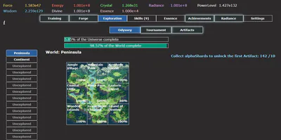 Odyssos is an incremental game where you embark on a journey of cosmic exploration and self-improvement. You start with basic training exercises and gradually unlock more powerful abilities, upgrades, and automations.