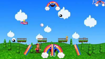 -a,d,space: for chica, reach the finish in time (10s) and dont touch the rainbow..