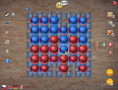 The goal of the game is to push all the opponent's stones from the 'overboard' area. In the case of the selected version B, the winner is player who has in the draw more stones in desktop area. Stones can only push the same or smaller number of enemy's stones out. The PC version also allows you to start a game with randomly mixed stones in any number.