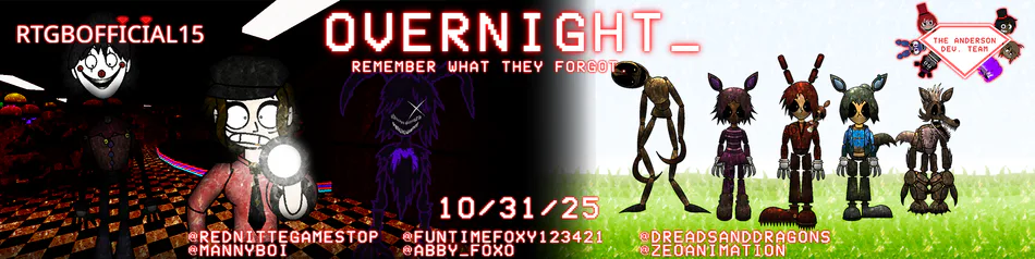 OVERNIGHT_ is a point-and-click survival horror video game series developed by The Anderson Dev Team. This is another remake of Five Nights at Anderson's made by @DreadsAndDragons