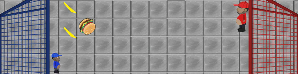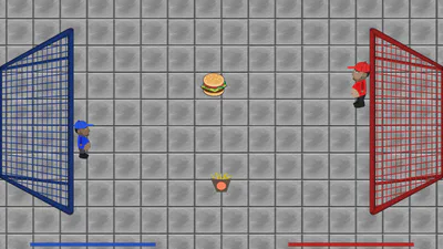 Atire hamburgeres fazendo gols no seu oponente. Também é uma boa acertar as batatas para que elas façam gols.
