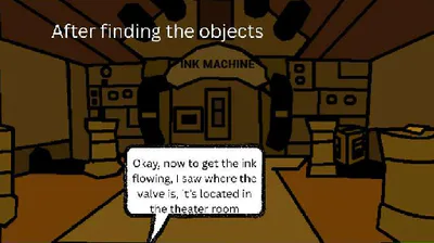 Kimberly the skunk sends to the world of Bendy and the Ink Machine, she goes through the halls of Joey Drew Studios. She ges to the Ink Machine room and raises up The Ink Machine. Before she explorers the studio for objects, she plays an audio recording from Wally Franks "the studio's janitor." Next she finds six objects and puts them on the pedistals in the break room. She turns the valve in the theatre room, and she pulls the lever in the break room. When she discovers that the Ink Machine was borded up. The Ink Demon arises. Kimberly runs to the exit. #fangame #horror #bendy