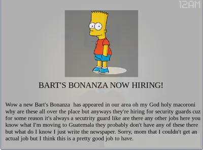 A new Bart's Bonanza has opened, and it is bigger and better. However, the creatures are just as hostile...