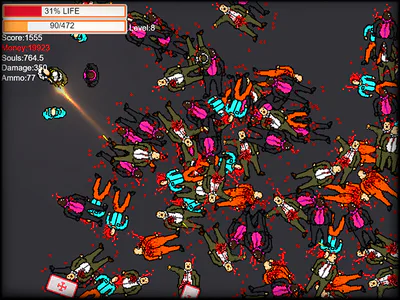 Rock'n'Zombie is a fascinating 80s – style third-person shooter. Juicy graphics and interesting gameplay will occupy hours of your time. The game has a unique system for upgrading weapons. Seven weapons and two types of features allow for infinite upgrade potential! Do not miss your chance to play this new game from the Neva Games developers. Have fun!