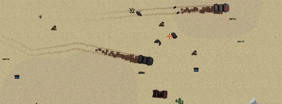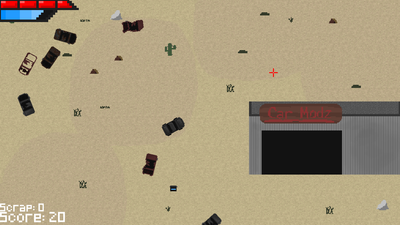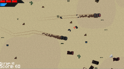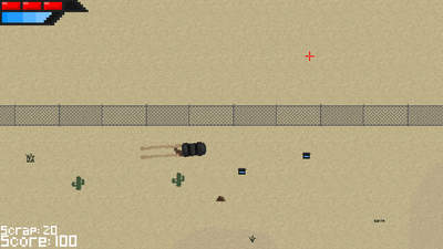 Scorched Earth is a top-down car shooter. It features a randomly generating level, and other hostile drivers roaming the map. You can them upgrade your vehicle with scrap that you find in the wasteland.