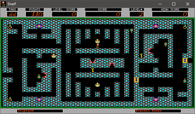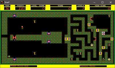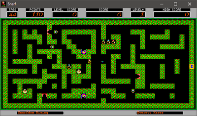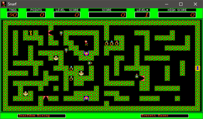 Your goal is to reach the right side of the level while getting more points and defending yourself from the snarf monsters.
