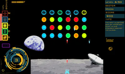 Space Resistance is a Space Invaders style action game. You're in control of a cosmic ship and you have to destroy dozens of alien life forms. There are two game modes. In the story mode your task is to repel the aliens from your planet and eventually from the whole universe. In the survival mode you have to resist new and new waves of enemies as long as possible. Various bonuses which you can buy for points acquired by destroying enemies will help you during the course of game. Every ten levels you will be able to upgrade one of the attributes.