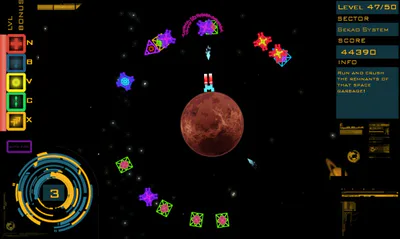 I like Galaga style shmups. And this game is a good shmup. But I hate the inertia of the protagonist. Inertia in fixed shooters - bad idea. Look at the classic old school (Space Invaders, Galaxian, Galaga). There was no inertia. This rule, which must comply with all the developers shmups.