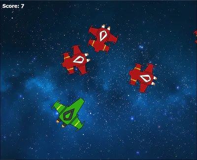 Use the arrow keys to move and the mouse to aim and fire, kill as many red enemy ships as possible before one kills you as you fight to defend the planet from invaders!