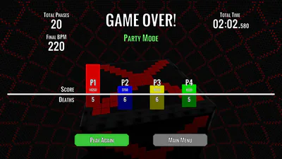 Jump-n-dodge couch-multiplayer arcade action to the beat of the music!
