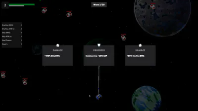 Destroy enemy ships wave after wave, collect EXP, and strengthen yourself with various buffs granted at each level. You can shoot, but the best way is to place enemies on the Starline.