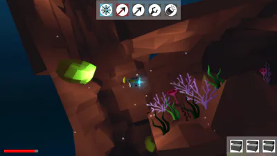 Two players must act in unison to command a submarine exploring caverns in the deep ocean, in search of lost treasures. Acting as one is key to defeat enemies, evade dangers and navigate throughout the subaquactic labyrinths.
