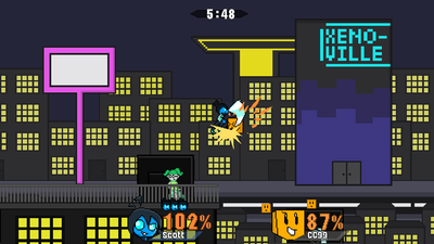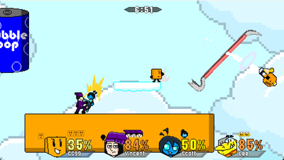 Super Slamdown is a Platform Fighter where up to 4 people can battle it out and see who's the best.